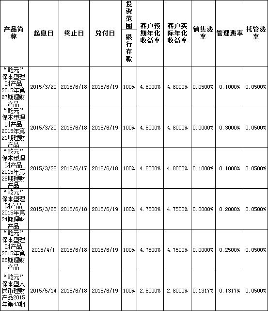中国建设银行苏州分行保本理财产品2015年第27期等6期理财产品兑付公告